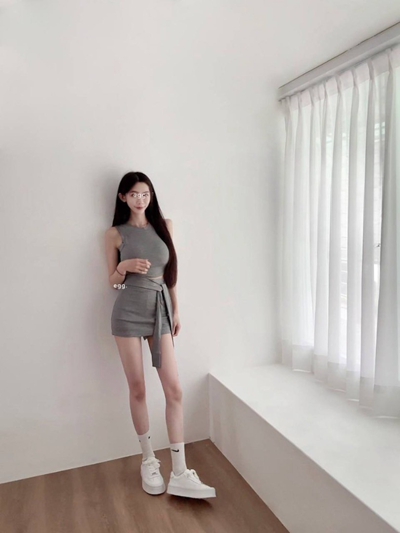 現貨無退換|氧氣少女感圓領背心+綁結褲裙