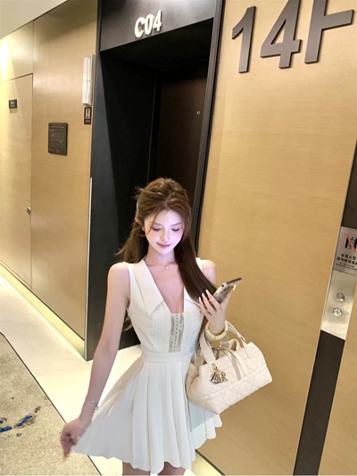 現貨無退換|氣質蕾絲反領簍空百褶洋