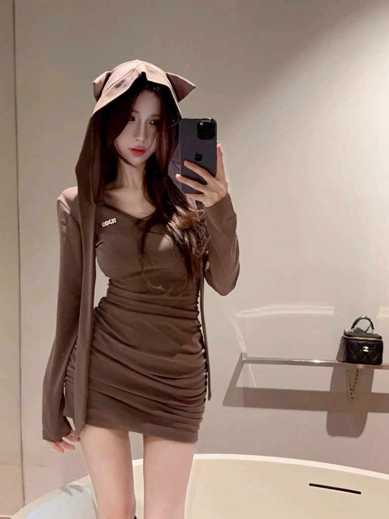 性感小姐姐連帽抓皺包臀洋