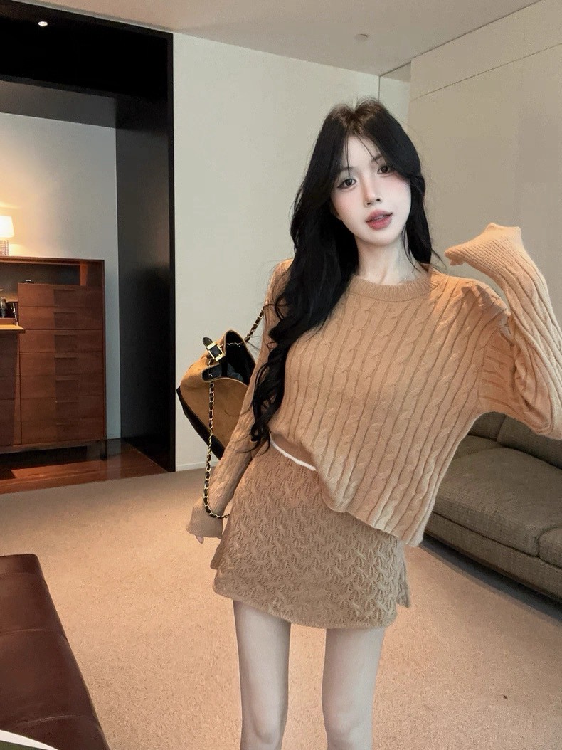 套裝麻花紋針織衣+包裙