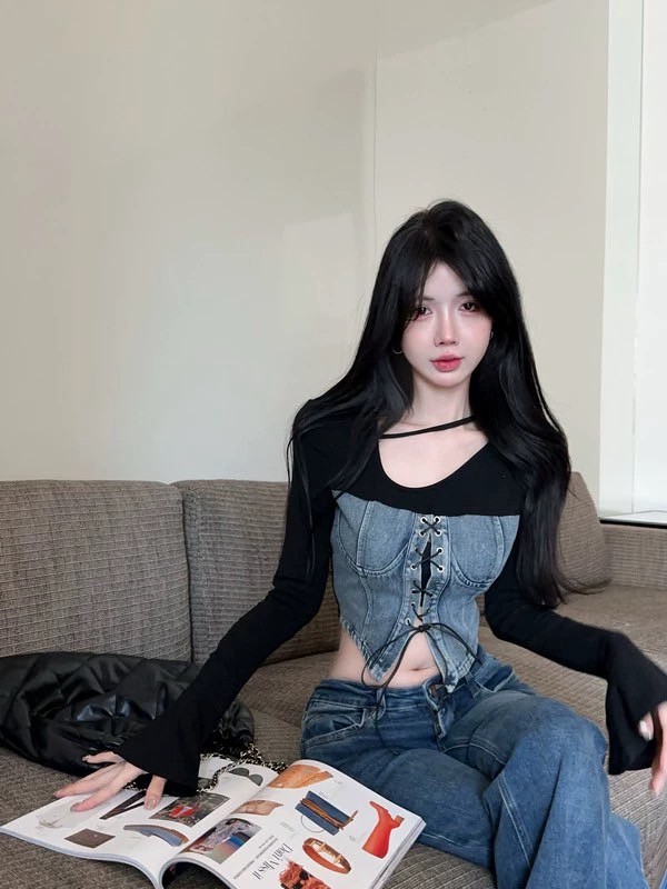 現貨無退換|個性拼接馬甲牛仔上衣